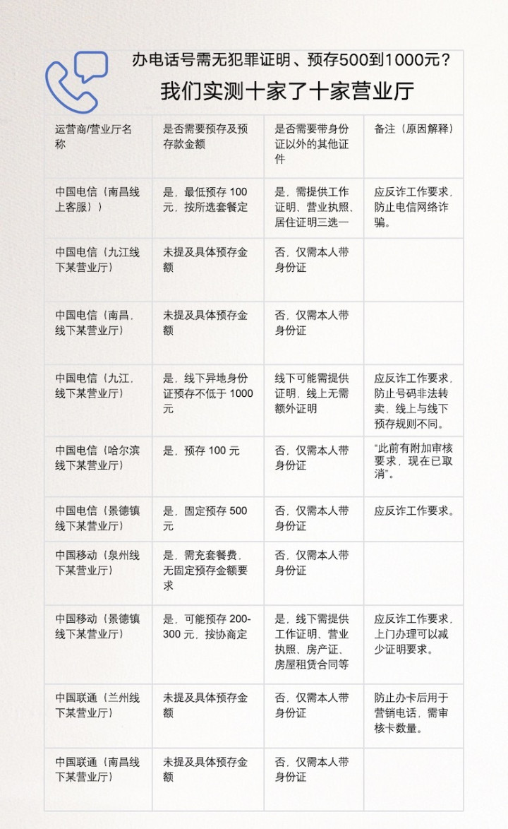 我们实测多家运营商办卡业务发现,不少地区营业厅要求出示额外证明材料。