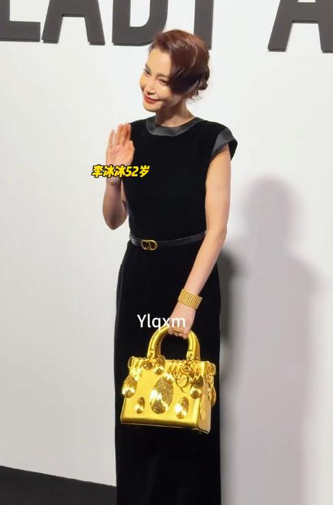 手里那只金色手提包据说是迪奥archive系列的古董款,全球限量3只,这次特意从巴黎空运过来。